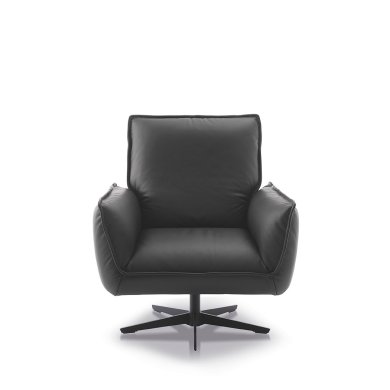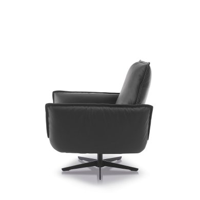 - armchair with round tube sled base, metal swivel base, or metal turntable in satin nickel (stainless steel optic) or powder-coated matt black