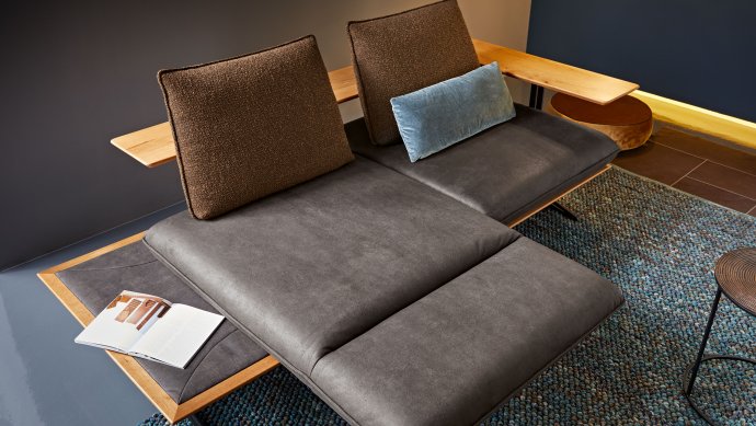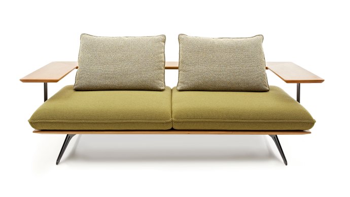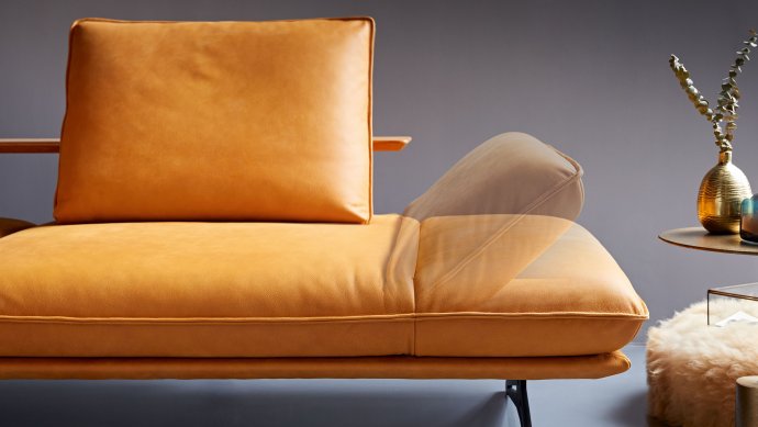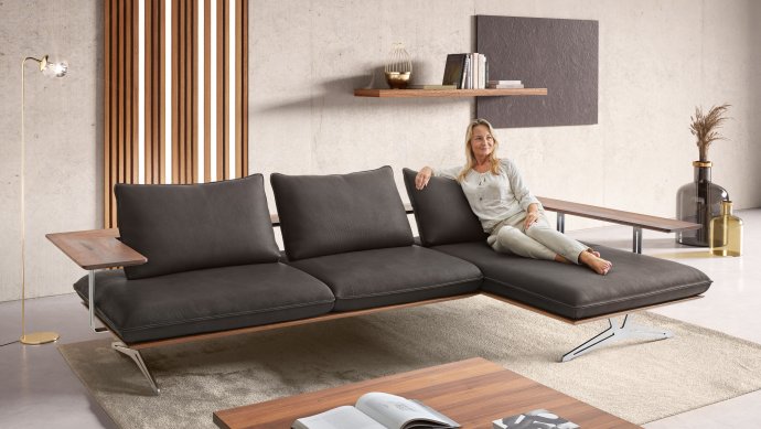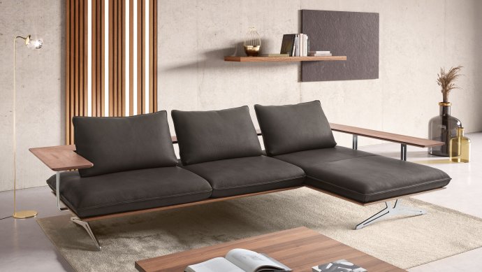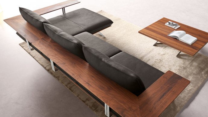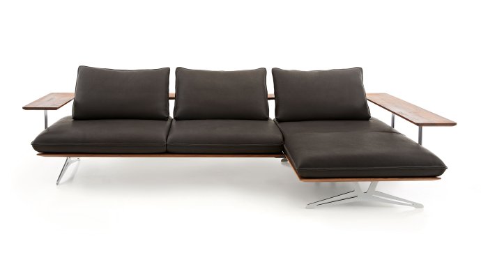 - elegantly curved metal runners lend the sofa a weightless lightness, available in satin nickel (stainless steel look) or powder-coated textured matt black