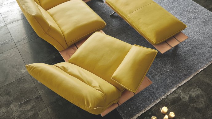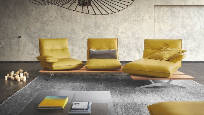 This range of sofas will attract everyone’s attention. Individual seats with a pointed cushion look which can be moved to the side and rotated by 360°. The elements rest on a solid wooden platform. MANSON stands out with a fine seam which has been elaborately worked by hand. MANSON is given even more individualitiy by the possibility of combining two colours and even fabric and leather.